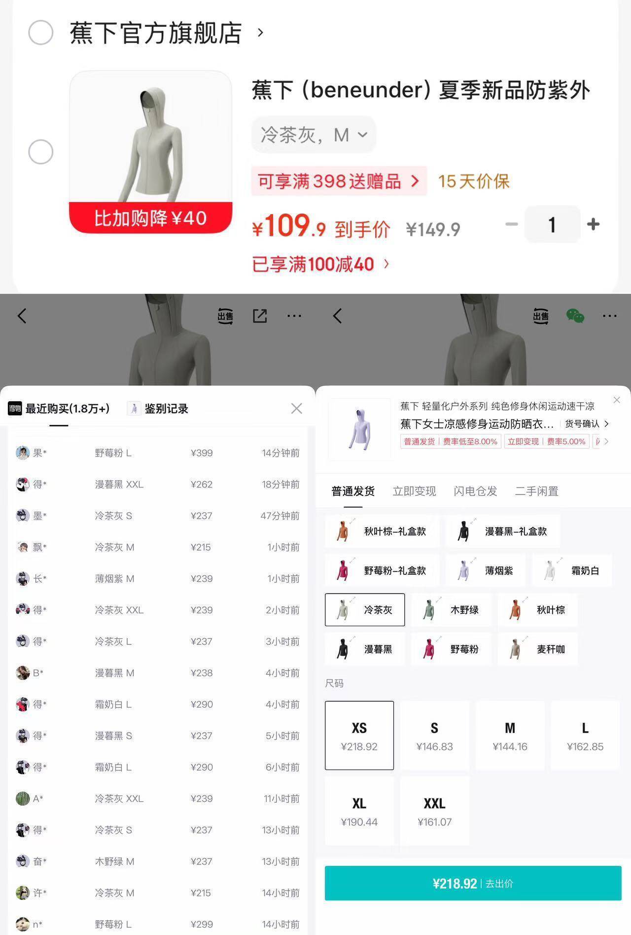 蕉下女士凉感防晒衣到手109元 得物售价237元