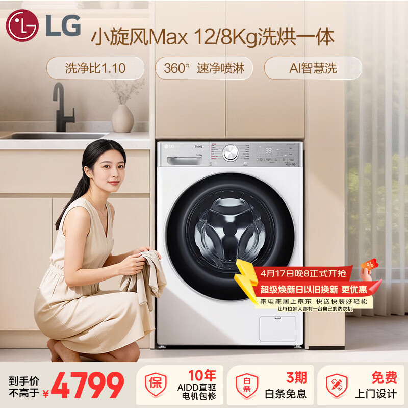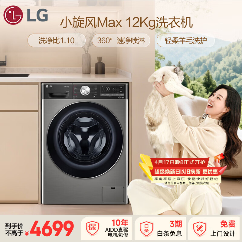 LG小旋风12KG洗烘一体机到手价3908.7元