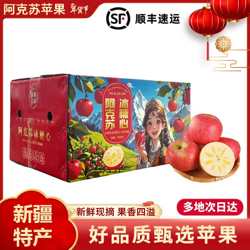 ¥69.9 疆薯娃 新疆阿克苏冰糖心苹果 地理标志水果整箱装 新果 顺丰包邮 带箱10斤果径85mm+净重8.5斤 89.9