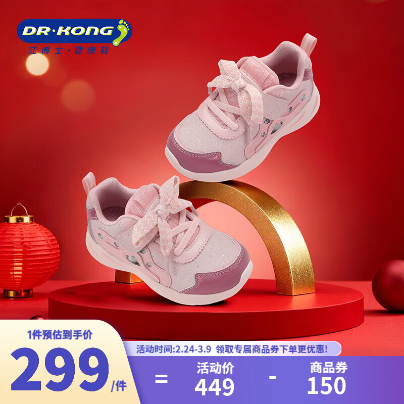 ¥299 江博士秋季女童学步鞋 1-3岁宝宝时尚休闲儿童运动鞋 粉色 24 码脚长约14.2-14.8 449