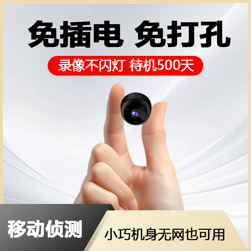 ¥75 家用摄像头可连手机远程免插电超高清夜视无需wifi监控器无红光 黑色【24小时手机随时观看】 256g循环录像 85
