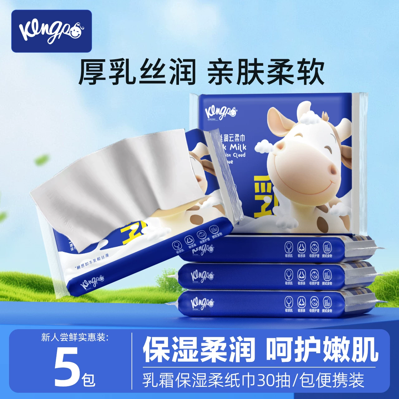 ¥3.99 5包*30抽!Kingp琦宝乳霜保湿云柔纸巾 5.99
