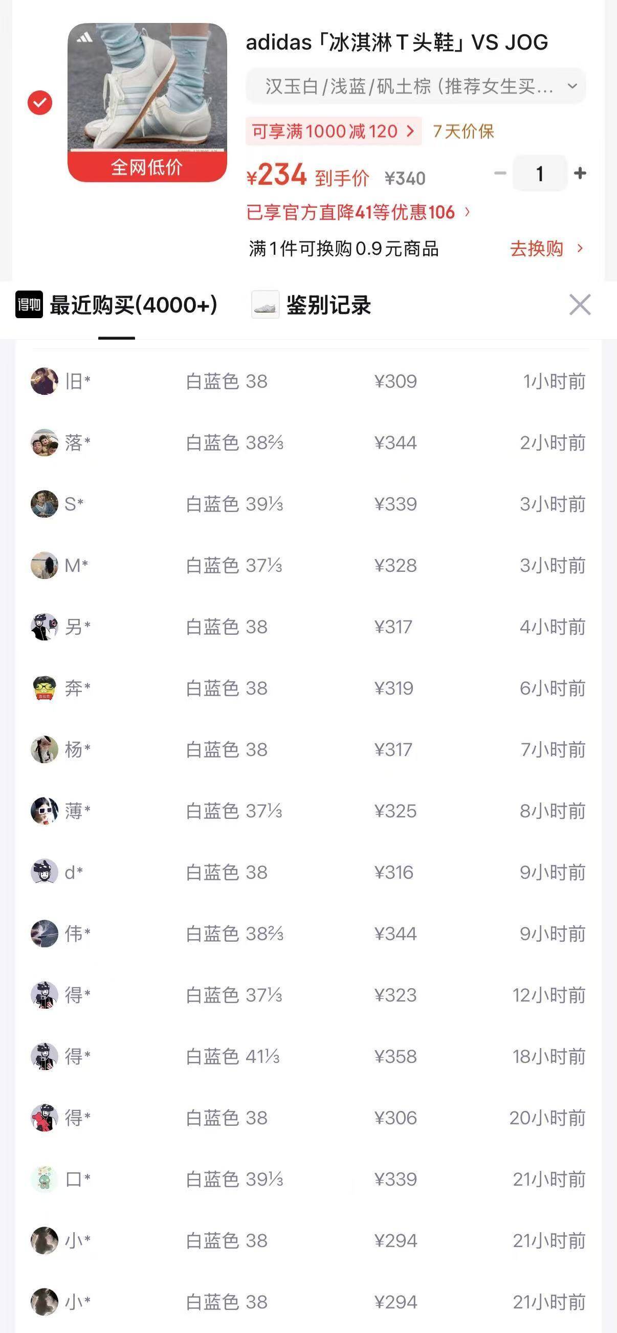 阿迪冰淇淋T头鞋 购物金到手220元