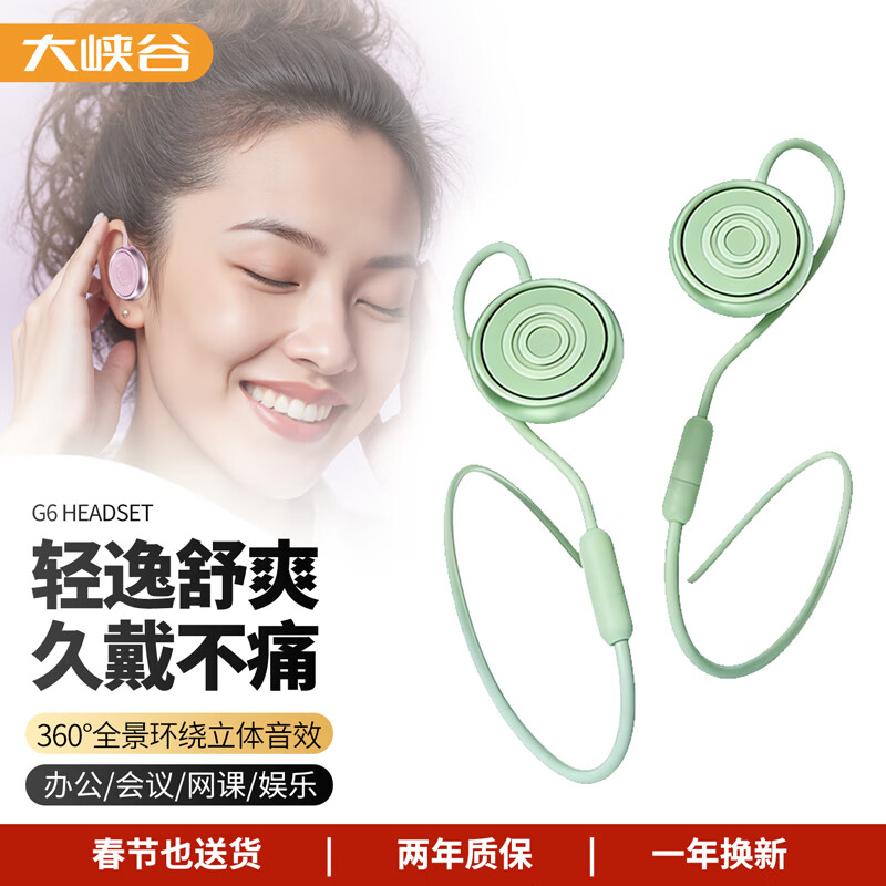 ¥266.18 大峡谷G6有线耳机挂耳式不入耳带麦克风二合一办公会议游戏电竞久戴不痛适用手机电脑笔记本平板 G6绿【3.5圆头+1分2电脑双接头】 标配 285.18