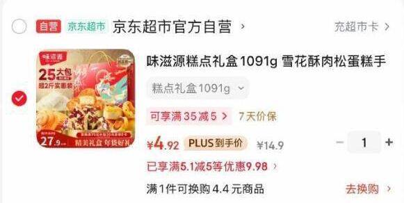 味滋源糕点礼盒 1091g 仅需 4.92 元