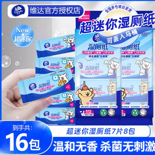14.9元包邮!维达 湿厕纸 超迷你湿巾7片*16包