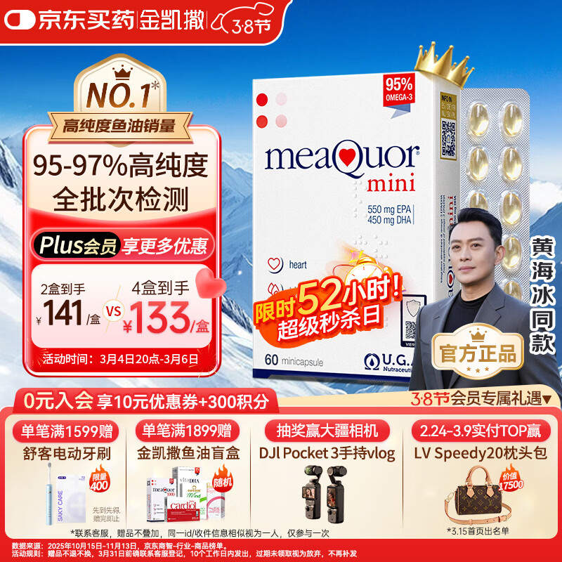 金凯撒95%~97%高纯度深海鱼油软胶囊omega-3成年人DHA+EPA非磷虾油 30粒