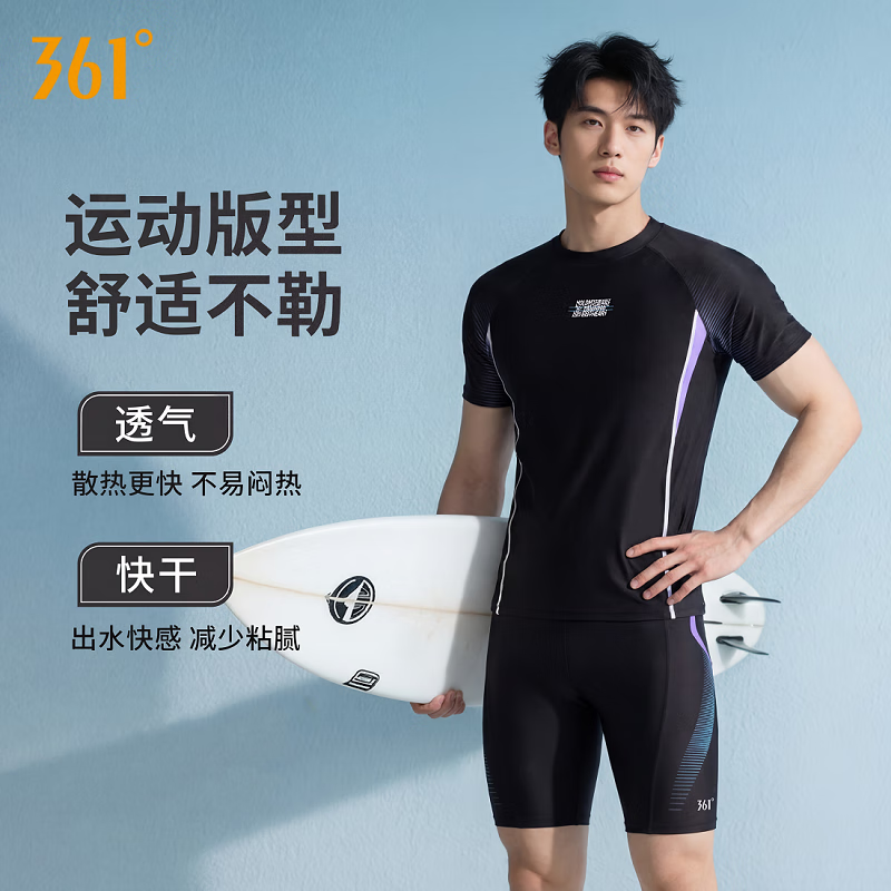 ¥80.9 361°泳衣男士套装泳衣青少年成人男生大码游泳上衣男款泡温泉泳裤套装 黑色【短袖上衣+五分泳裤】-4004 XL 身高170-180cm体重65-75kg 89.9