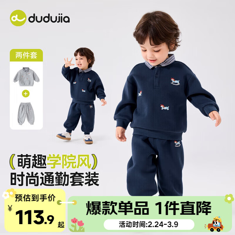 ¥105.9 嘟嘟家男童套装卡通洋气新款春装宝宝两件套韩版运动潮女童卫衣卫裤春秋 藏青色 100 129.9