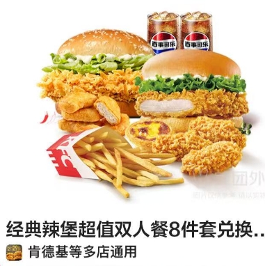 【美团外卖】46.9元!肯德基 爆`款双人餐 8件
