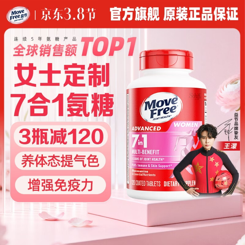 ¥214 Move Free益节女士男士氨糖软骨素120粒 美国原装进口维骨力 成年中老年人 【女士氨糖】7效合1 活力养颜- 120粒*1瓶 239