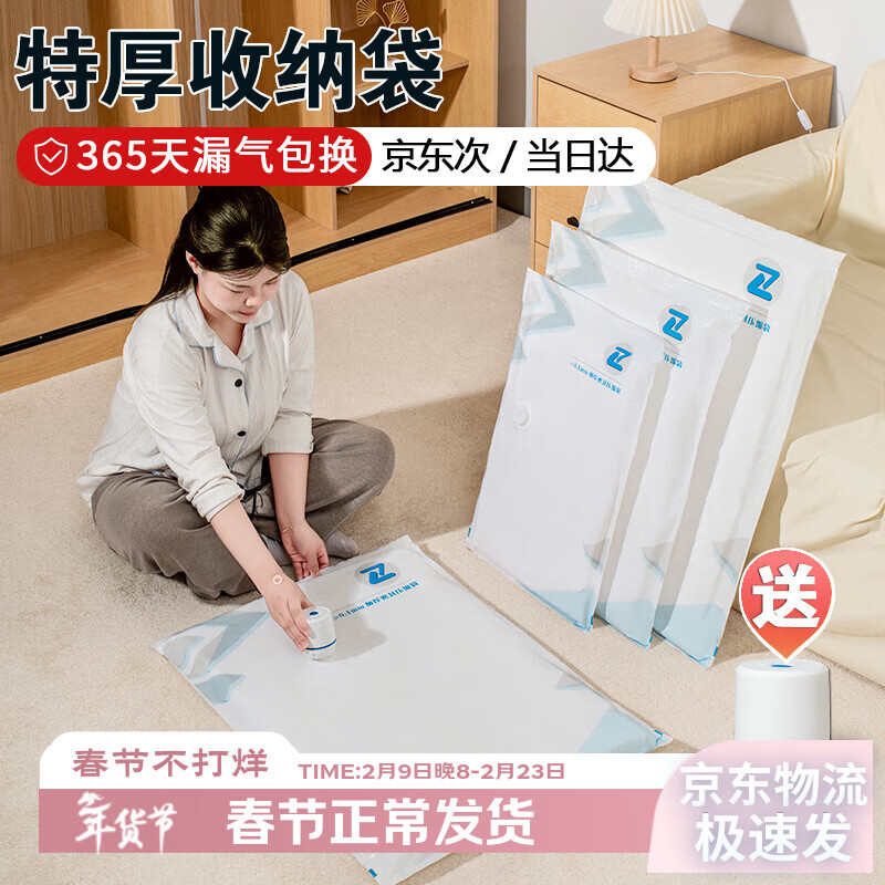 ¥28.8 良盈尚品真空压缩收纳袋家用加厚防霉防潮被子衣物收纳袋抽气真空密封袋 无泵 3 件【3个特大号100*70cm】 1套 42.8