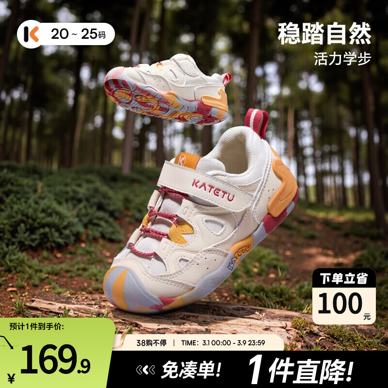 ¥239.9 卡特兔宝宝学步鞋春季小k盾机能鞋1-3岁户外童鞋软底防滑婴幼儿童鞋 米白黄 23 内长约15.0cm脚长约13.8-14.4 269.9