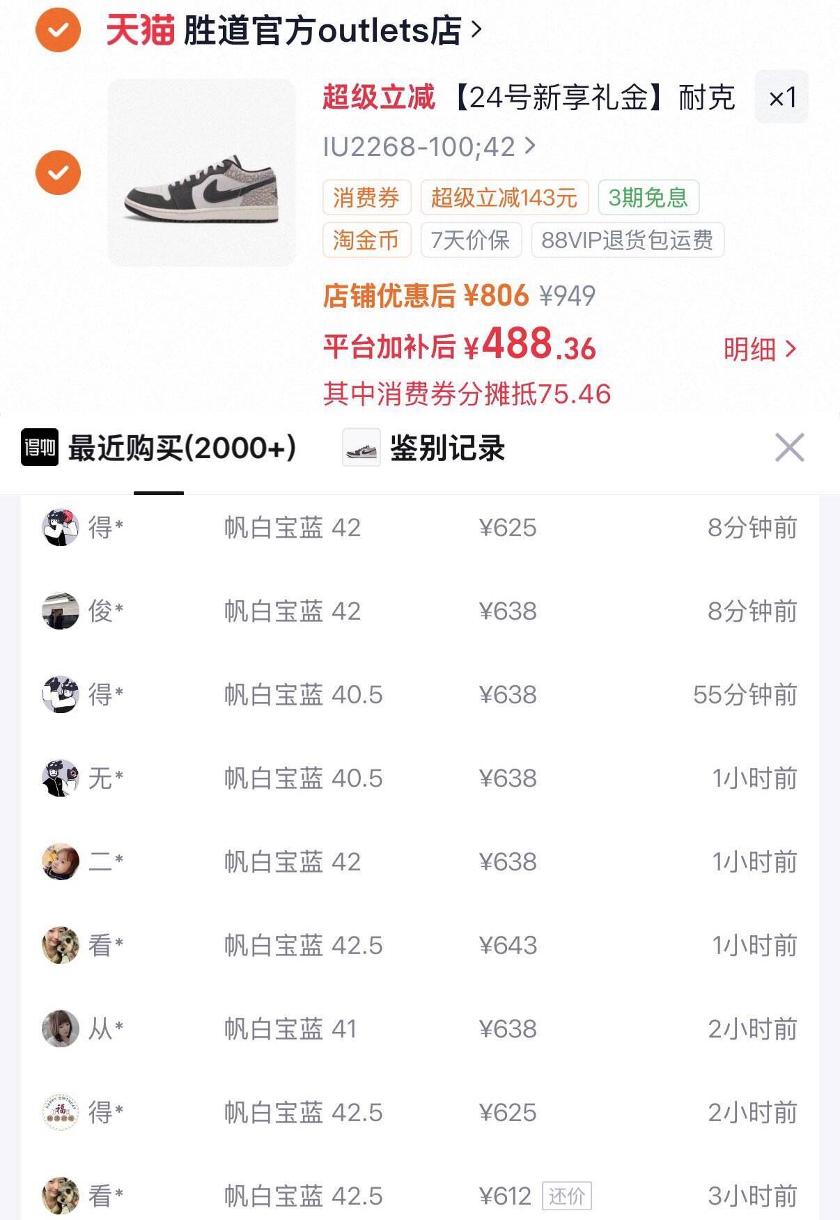 AJ1爆裂纹鞋仅需488元,得物售价639元