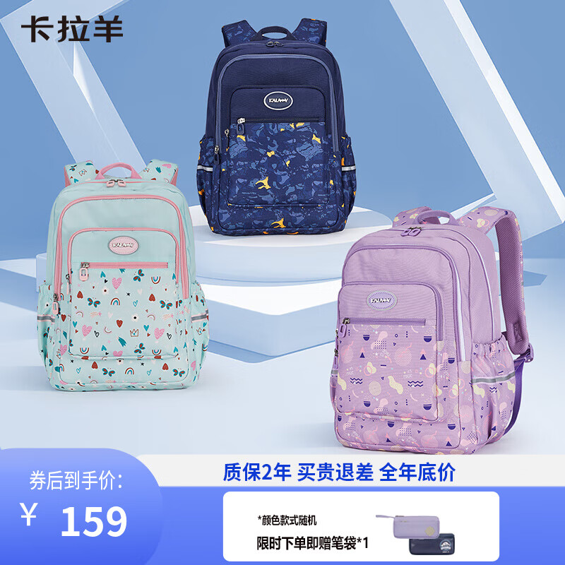 ¥159 卡拉羊1-3-6年级小学生游学包书包幼升小男女大容量儿童双肩包TX5216 26L丨藏青(4-6年级初高中) 300