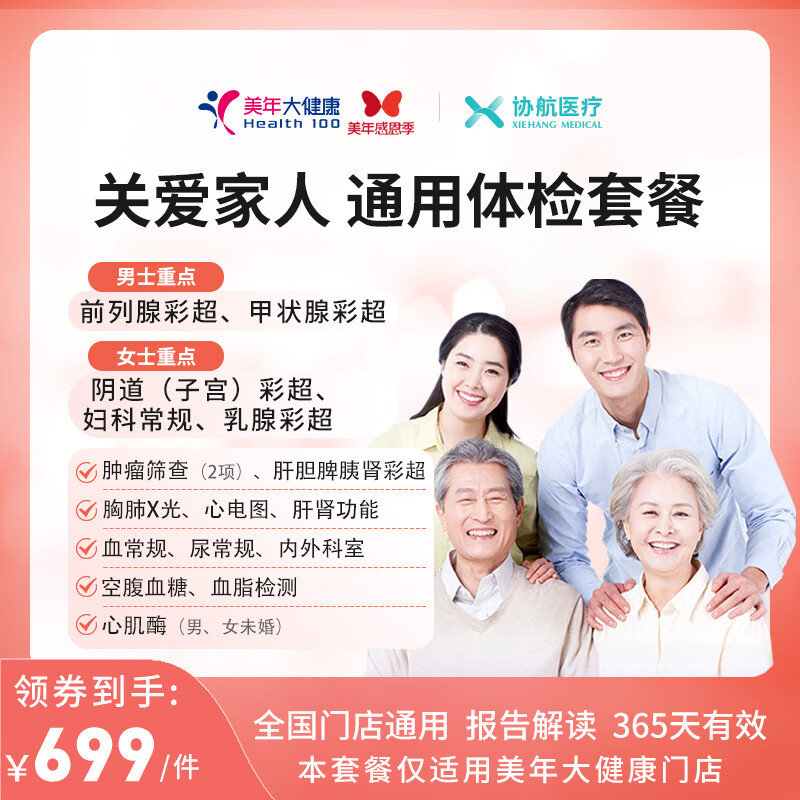 ¥1038 美年大健康/瑞慈体检家人畅享D体检套餐中青老年男士女士全国500+门店通用体检卡 高阶版(2人份多减20)(美年瑞慈) 2个工作日内店铺客服(咚咚)发您卡密自主预约 2008