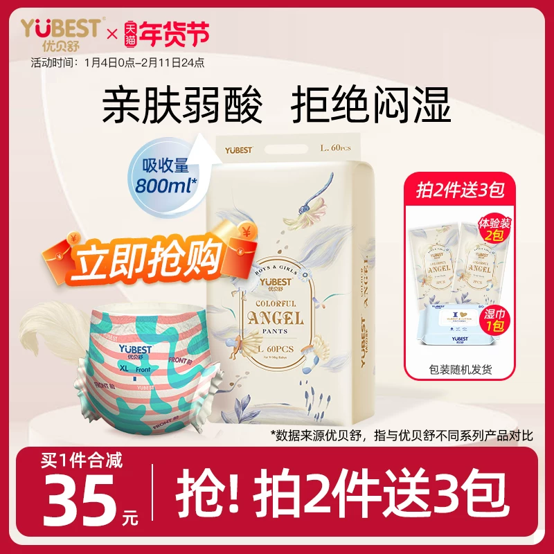 ¥55 送两片!优贝舒小彩裤超薄透气拉拉裤72片 79