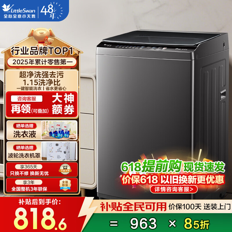 小天鹅波轮洗衣机10KG 到手价866元