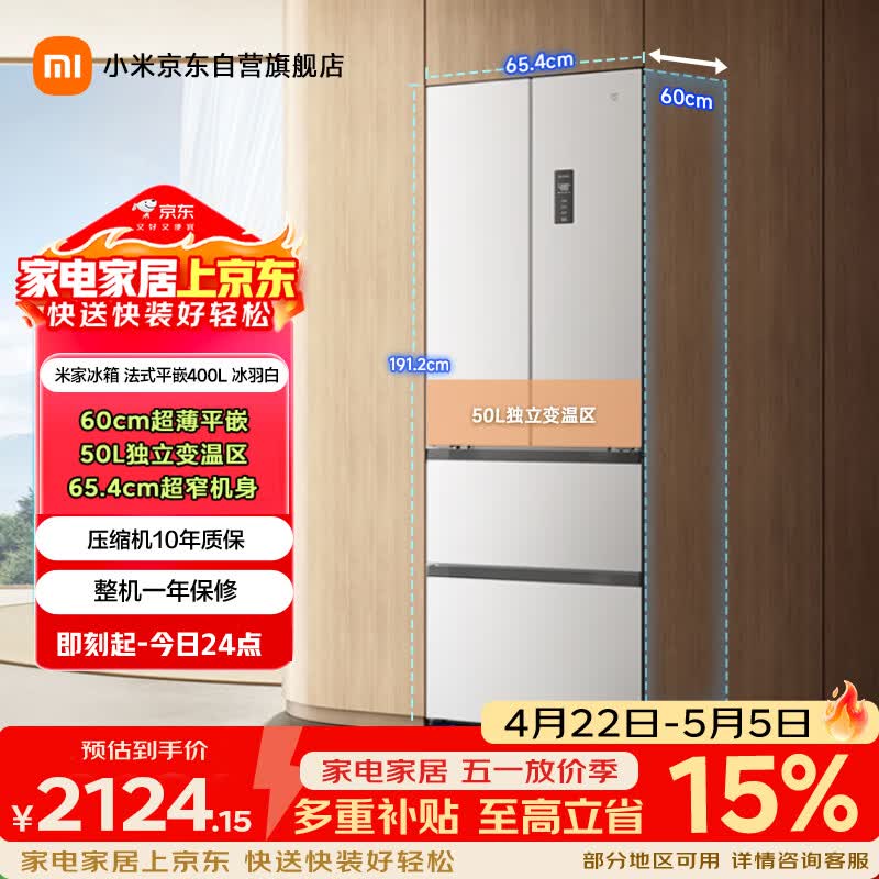 米家小米400L法式多门冰箱到手价2018元