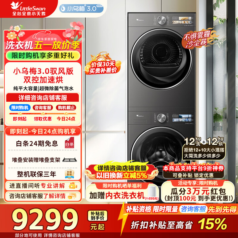 小天鹅洗烘套装12公斤 到手价10798.2元