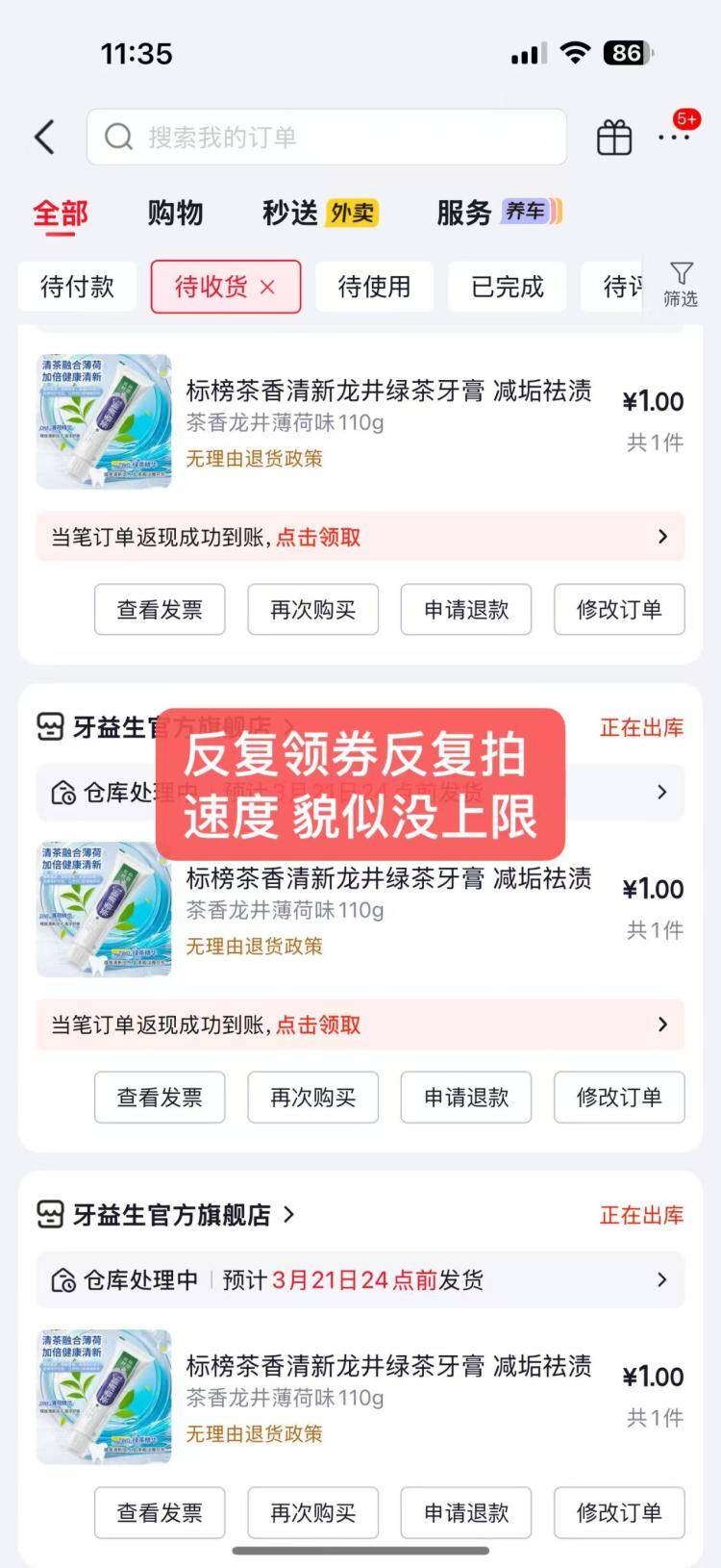 1 元抢龙井绿茶牙膏!手慢无,可反复领券下单