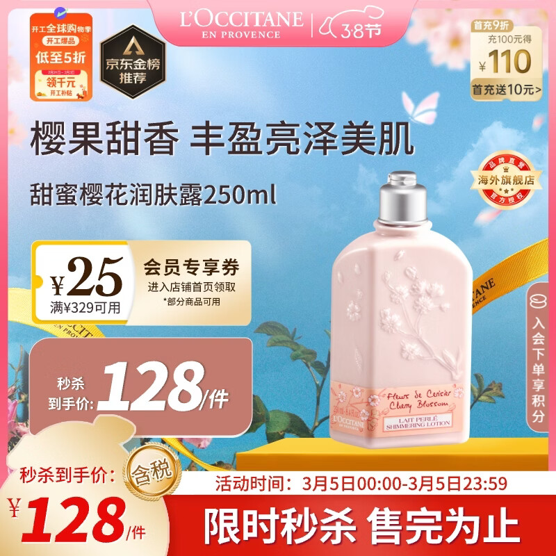 漏!欧舒丹樱花身体乳 250ml 到手仅 115 元