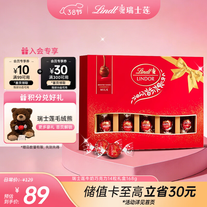 瑞士莲软心巧克力礼盒仅需 23.8 元!黑五神券 + 百亿补贴手慢无