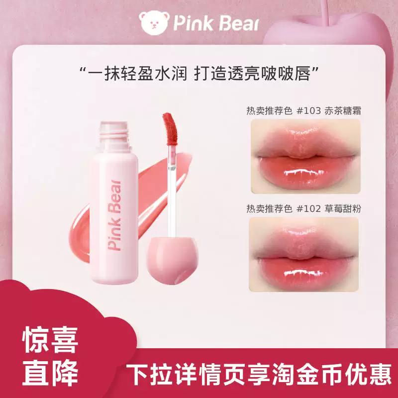 ¥26 Pinkbear皮可熊轻漾水光唇釉唇蜜唇泥口红 102