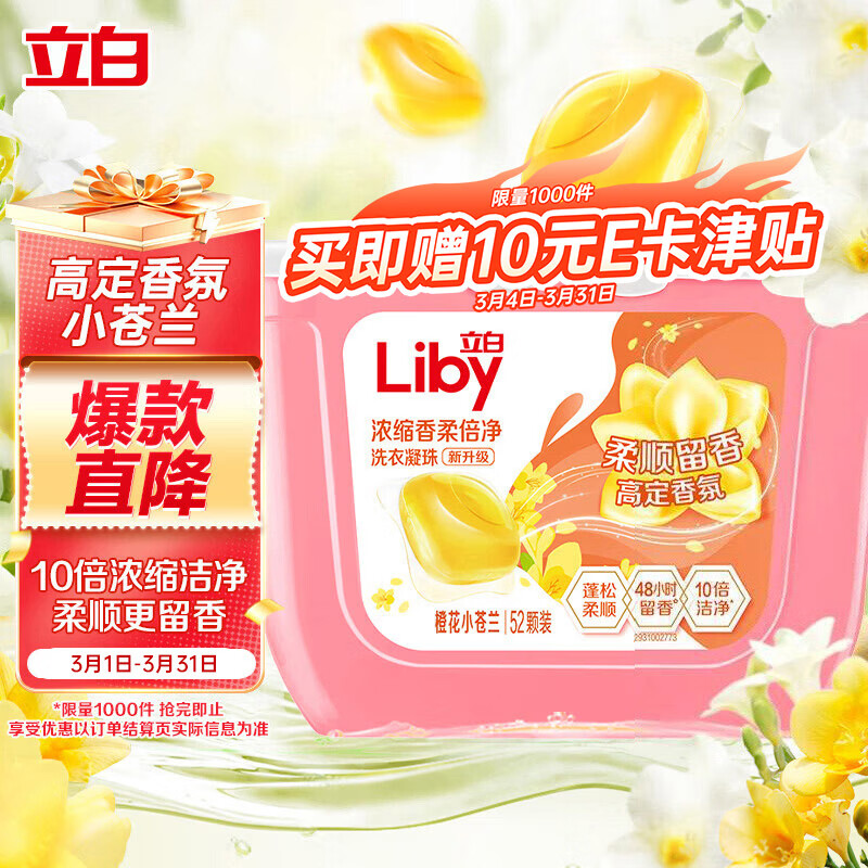 立白小苍兰洗衣凝珠 52 颗仅需 4.8 元