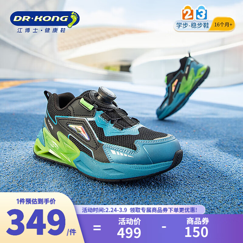 ¥349 江博士秋季男孩儿童运动风透气学步鞋 免系旋钮扣百搭儿童运动鞋 黑/蓝 31 脚长约18.9-19.5 499