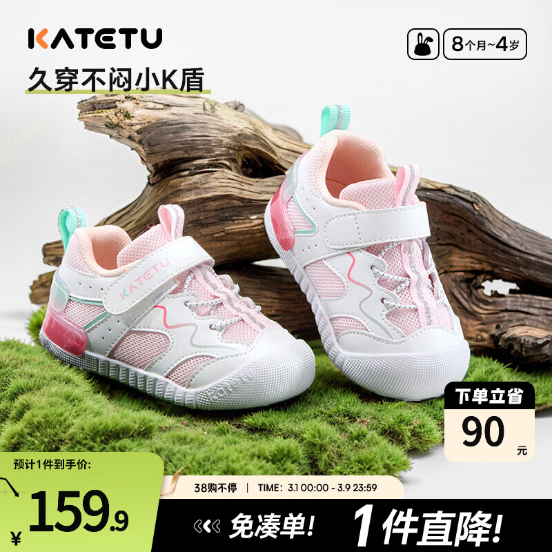 ¥219.9 卡特兔宝宝学步鞋春季网眼透气小k盾宝宝鞋防滑软底机能鞋儿童鞋 白粉 24 内长14.5cm 脚长13.6-14.2 249.9