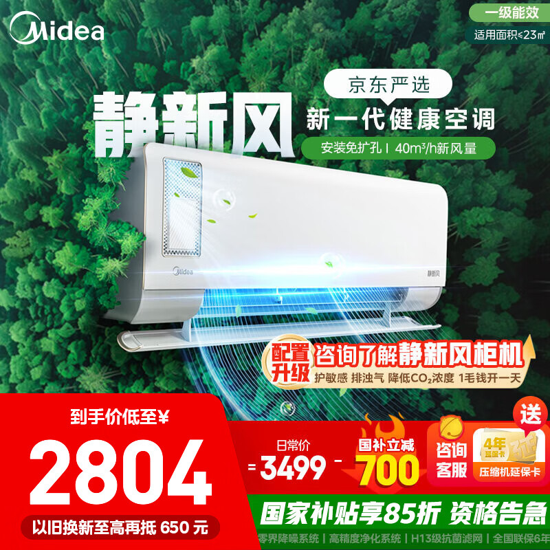美的新风空调1.5匹到手价2699元,8折抢购