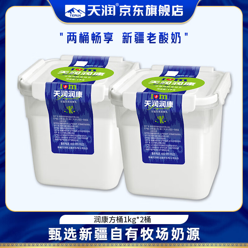 天润新疆方桶老酸奶1kg*2桶,折后仅39.48元