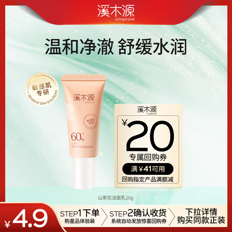 溪木源山茶花洁面乳20g 到手价0.9元