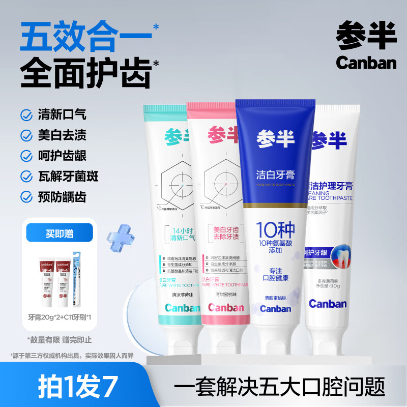 自营参半牙膏4支装plus到手22.9元,赠牙刷+小样