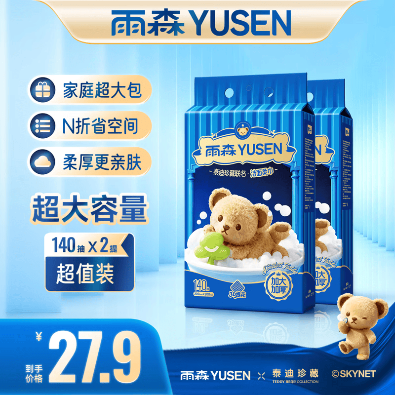 雨森悬挂洗脸巾140抽*2提 最终到手价22.9元
