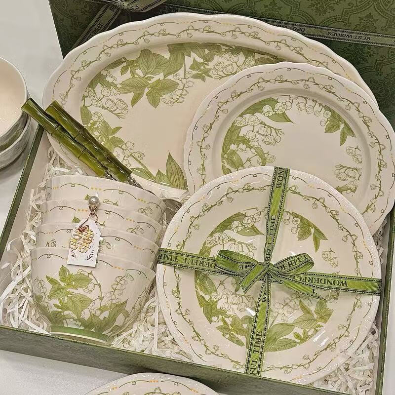 ¥39.9 白朔碗具套装碗盘餐具整套简约高级陶瓷釉下彩餐具套装乔迁家用送礼 2人食带汤碗(不带礼盒) 9件套 【景德镇发货 胖东来同款】 97.9