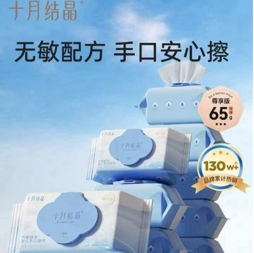 十月结晶珍珠纹湿巾5包到手19.9元,宝宝擦嘴更安全