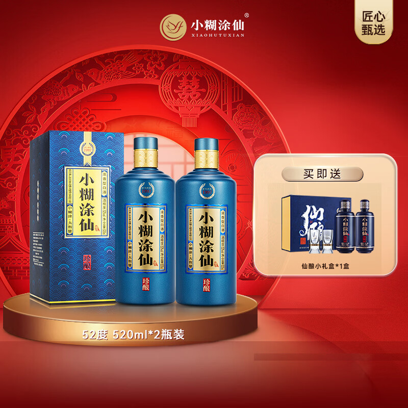 ¥359 小糊涂仙 【珍酿】白酒浓香型52度520ml贵州纯粮食高粱酒白酒宴请商务送礼 52度 520mL 2瓶 699