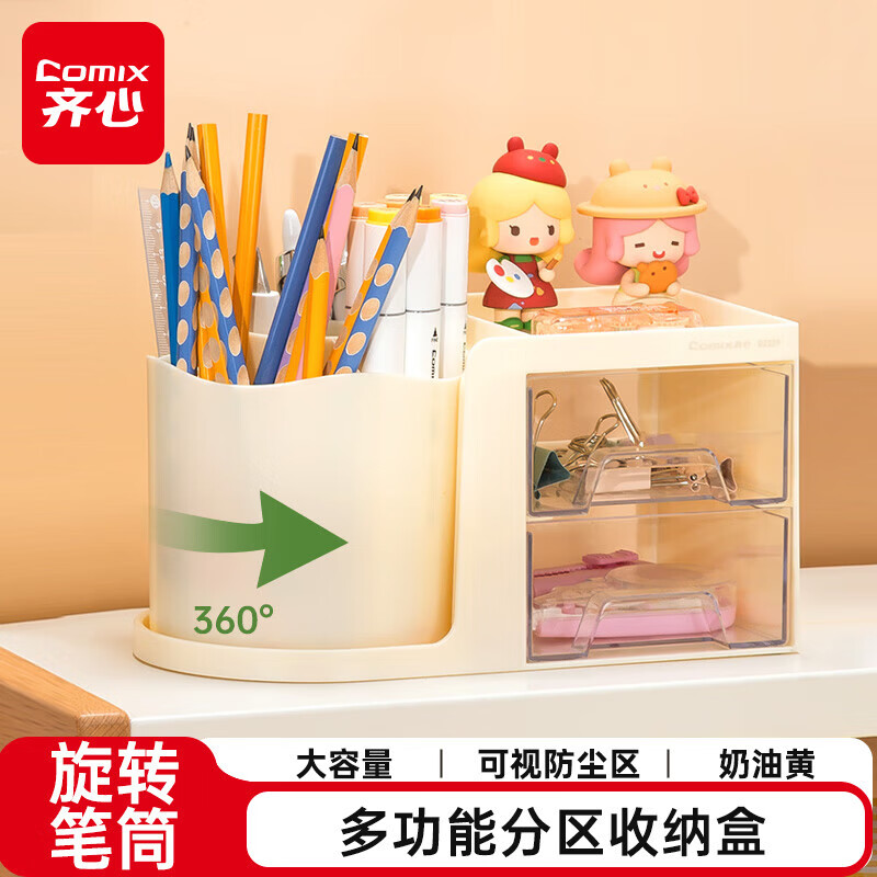 齐心旋转笔筒五格+双层抽屉 到手价15.9元