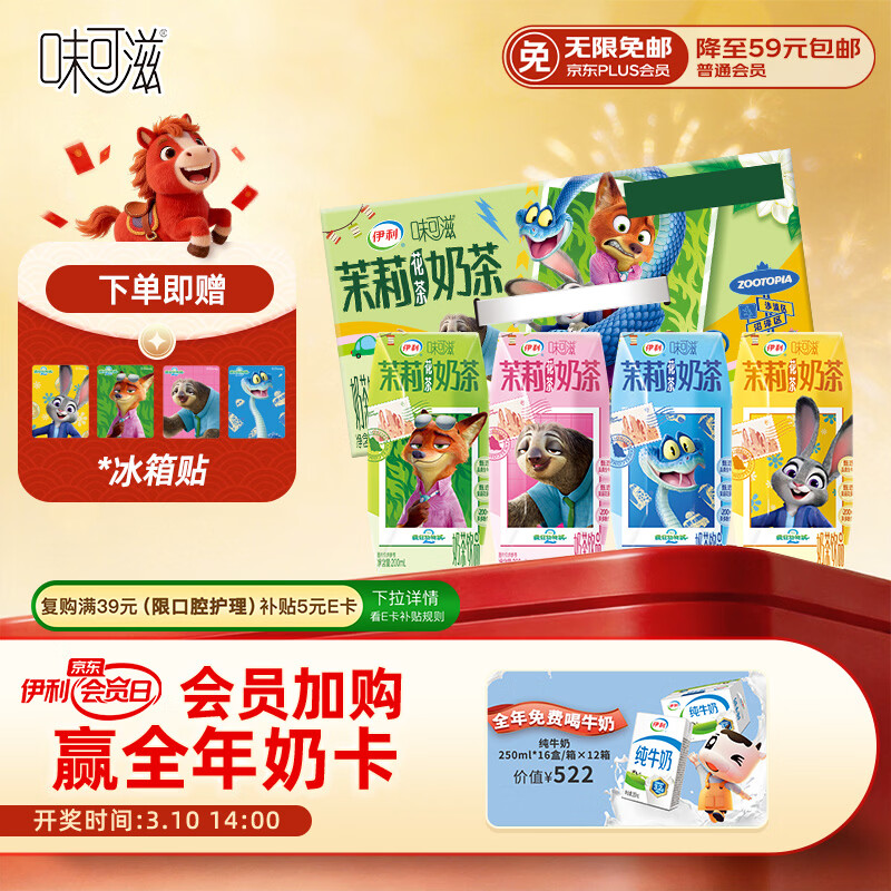 伊利味可滋茉莉花茶奶茶10盒装 疯狂动物城IP礼盒 到手价12.26元