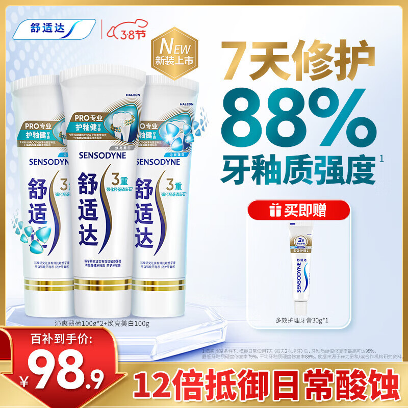 舒适达护釉健修复牙膏330g(100g*3+30g*1)Plus首购拍2件折后约74元/件
