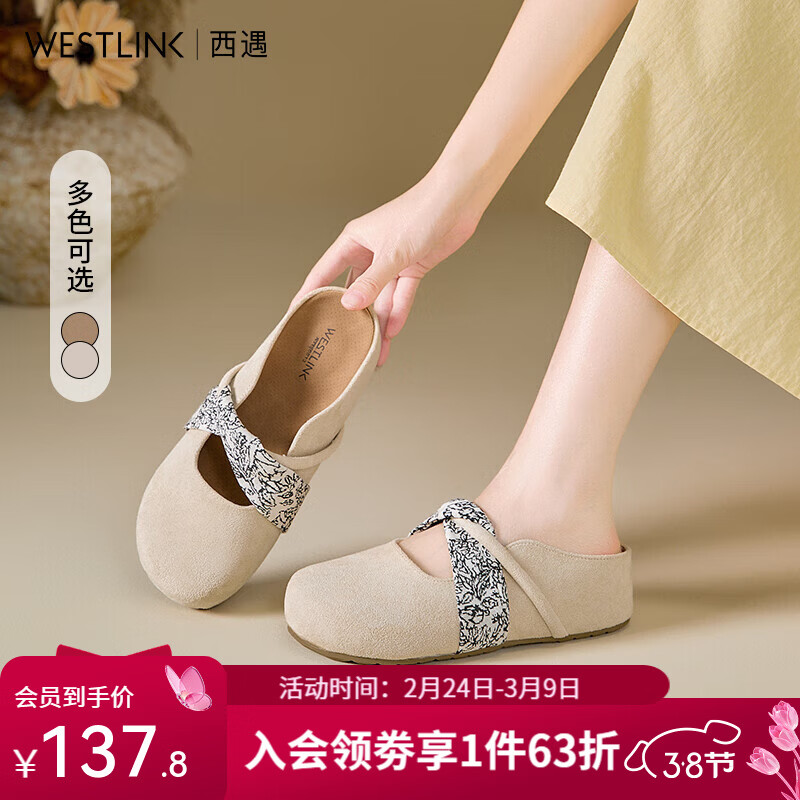 ¥170.82 西遇厚底勃肯鞋女秋季2025新款法式仙女风外穿拖鞋内增高包头半拖 米色 预售20天 39 219