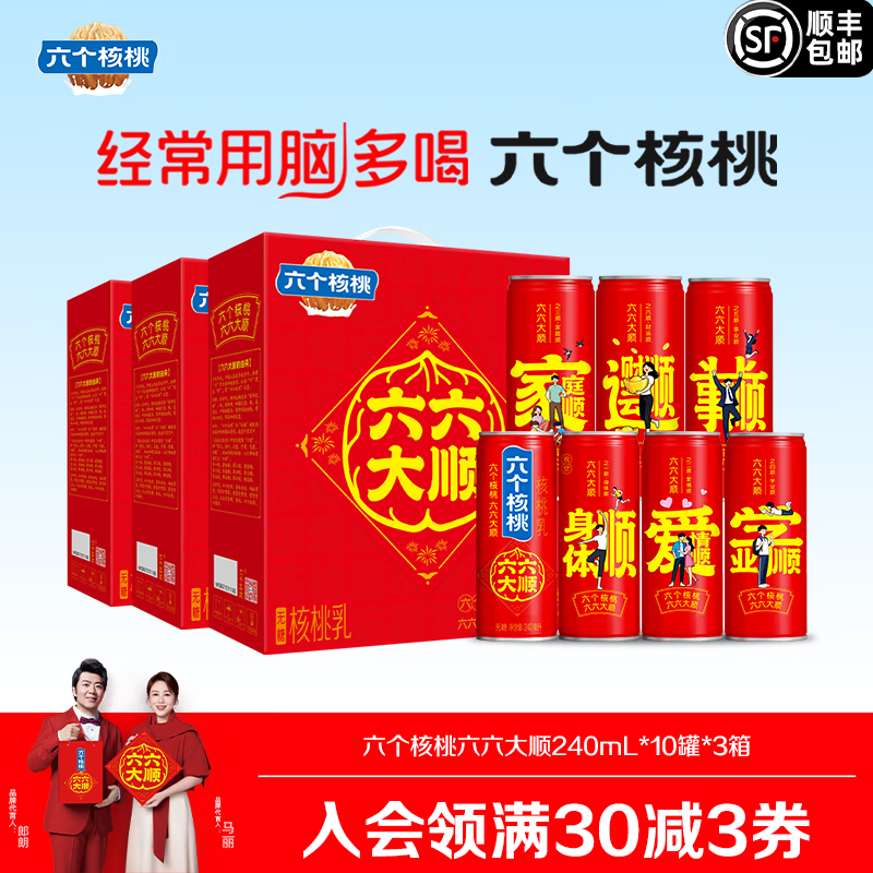六个核桃六六大顺无糖型240ml*10罐*3箱 到手价89.7元