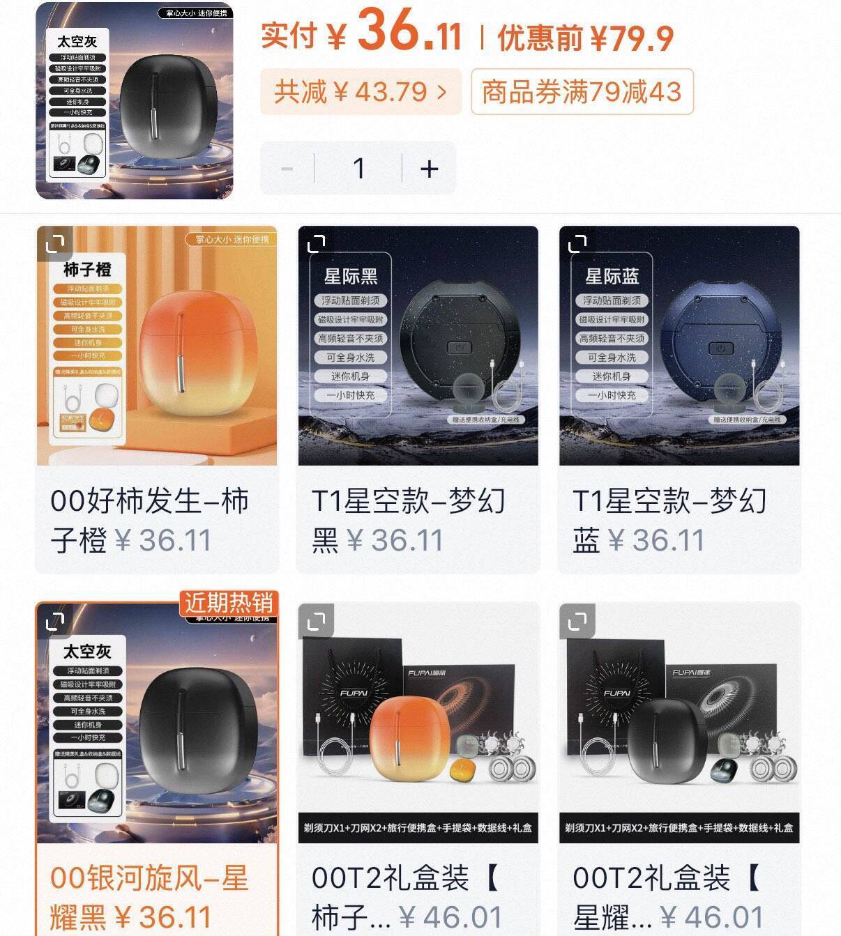 福派便携式星空剃须刀36元
