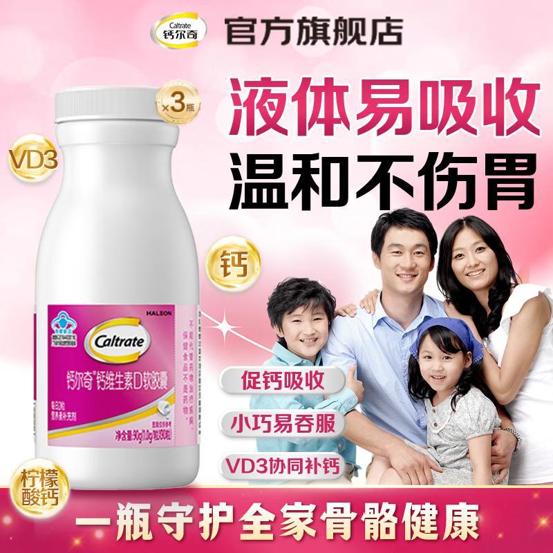 ¥261 钙尔奇(Caltrate)钙尔奇钙片合集包含孕妇钙金钙液体钙女钙 【送长辈90天量】养骨钙 60片*3瓶 钙片 291