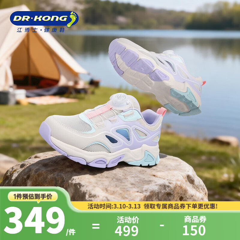 ¥349 江博士(DR·KONG)春季男女中大童舒适透气运动鞋 免系旋钮扣鞋带儿童鞋 米/紫 35 脚长约21.6-22.1 499