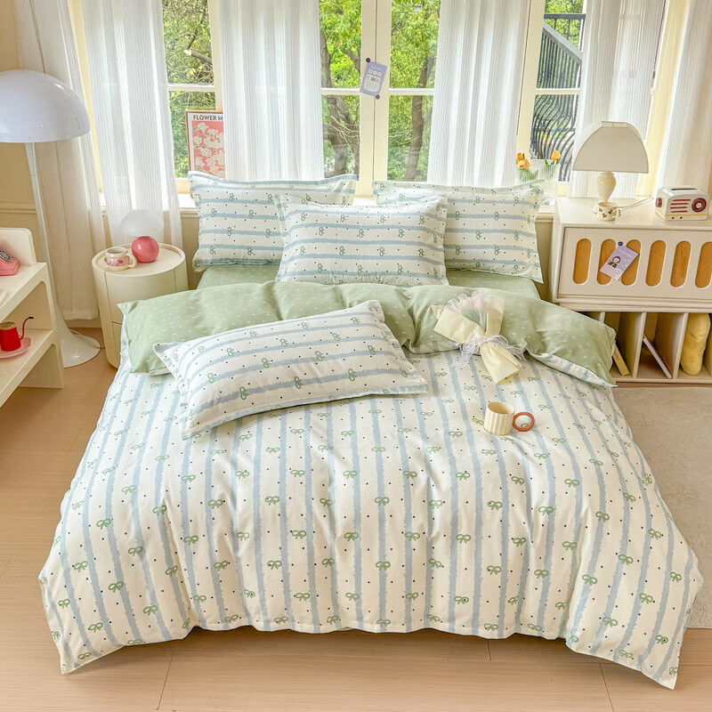 ¥59.9 多兰诗(Duolanshi)春秋加厚磨毛四件套 ins四件套花卉田园风格床单被套四件套 点点情深M 1.2米 床单款 被套150*200 三件套 129.9