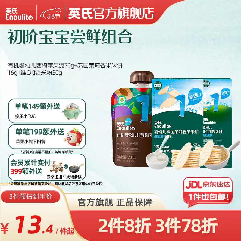 ¥15 英氏(Engnice) 有机婴幼儿果泥西梅泥 多口味水果泥佐餐泥 婴儿辅食宝宝零食 【果泥初尝】西梅组合 116g*1盒 17.2