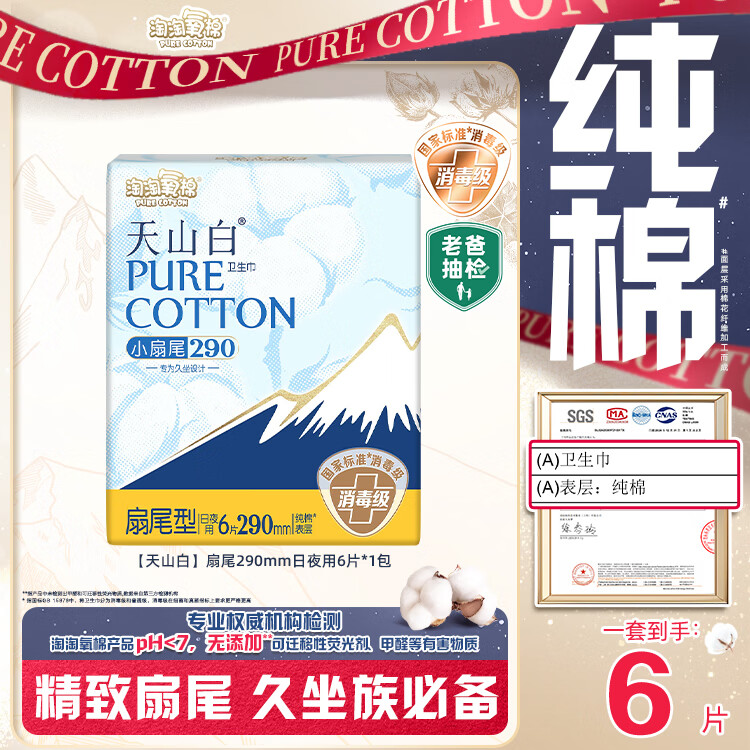 淘淘氧棉天山白卫生巾任选14件仅需62.8元,折合4.4元/包